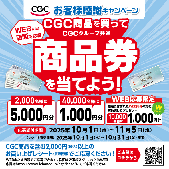 最大52,000名様に当たる! CGCお客様感謝キャンペーン開催中!